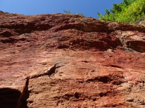 Mercia Mudstone a glorious ox-blood red (what we saw was) – is a collection of calcareous clays and mudstones; there are also apparently beds of impersistent green siltstone and fine-grained sandstone. Aren’t the names wonderful! Mercia Mudstone must be an important lady in the local Women’s Institute, and Impersistent Green Siltstone was probably a puritan with the strictest and most repressive of moral codes – do you think his wife called him Percy?