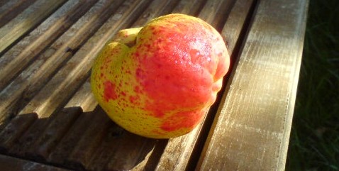 I have no images of oranges, it seems, so I have a quince… I wonder how you could make a quince polenta cake…