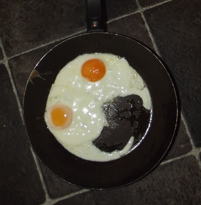 I have no pictures of turnips, their tops or poached eggs… here are some ghostly fried eggs.