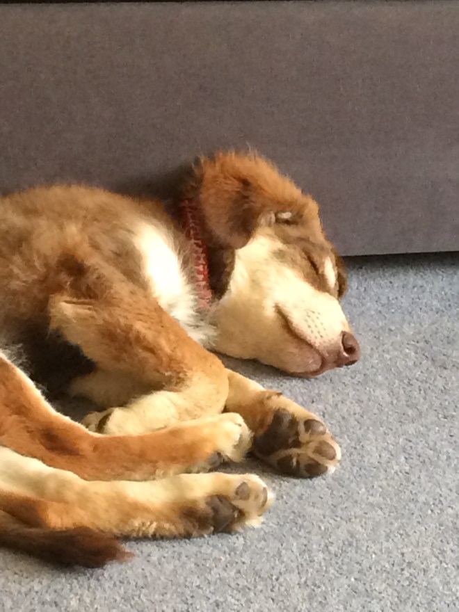 Dear dog-walking lady, yes you, madam, you with the two large Labradors, one called Molly, and a female friend. Yes, madam, you who parked your car on the road leading down to the beach as we were walking past with our pup. He’s not that small but he is very obviously a puppy, very fluffy, innocent eyes, not quite sure of where his feet are taking him. He was on a lead and we held him close by us as your two big dogs (not on leads) came ambling over. He sat down politely but they came right up to him – being friendly no doubt, but he was small and they were large. Your friend half-heatedly called ‘Molly! Molly!‘ but you were just saying what a cute little puppy we had, even as our cute little puppy was getting a bit over excited.