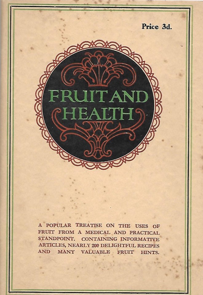 I’m really pleased with the little cookery booklets I bought for £1:50 each, and I’m just looking in ‘Fruit and Health’ by Haydn Brown and Sylvia Wayne (1st Class Triple Diplomée, National Training School of Cookery, London), published by the The Fruit Trades’ Federation in about 1924. Mr Brown wrote the health aspect of eating fruit, Ms Wayne the recipes. As with many cookery books of the period, and before, in the back are household hints, in this case with using fruit other than eating it. Sylvia gives some “Lemon-Aids” – the first three are lemons as a household necessity, lemons for the organs, and lemons for the complexion. There follows ‘More “Lemon-Aids”‘ –