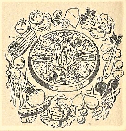 Salads may be served as a main meal or as an accompaniment to a meal. In the warm weather when a lighter diet is necessary, numerous different salads may be made. The greens and vegetables that are used in tehse dishes must be very carefully washed to remove grit, and all the dead and withered leaves removed. It is necessary too, to look over the leaves and see that all the small insects which maybe enfolded in the leaves have been washed away.